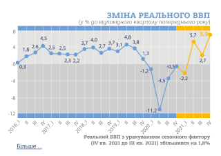 04.02.2022 Здійснено оперативну оцінку ВВП за IV квартал 2021 року