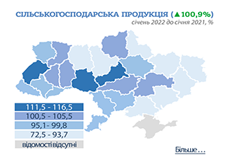 Індекси сільськогосподарської продукції за регіонами у січні 2022 року
