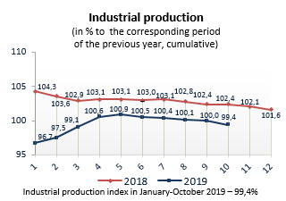Industrial producer price indices in January-October 2019 (to corresponding period of previous year)