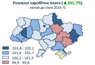 заробітної плати по регіонах у 2019 році, % до відповідного місяця