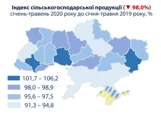 Індекси промислової продукції по регіонах за січень-травень 2020 року