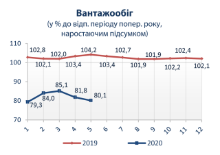 Вантажообіг за видами транспорту за січень-травень 2020 року