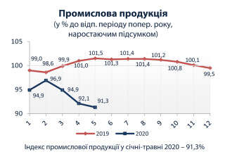 Промислове виробництво у січні–травні 2020 року