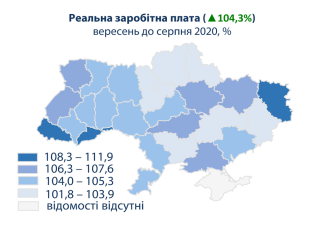 заробітної плати по регіонах у 2020 році, % до відповідного місяця