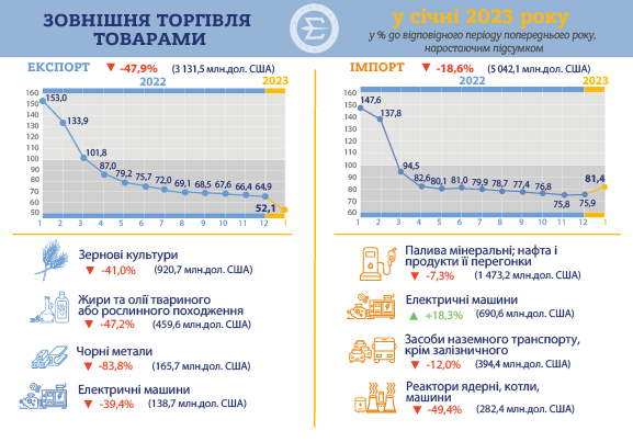 17.03.2023 Зовнішня торгівля України товарами у січні 2023 року