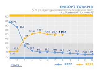 2012-2022 роках 13.10.2023 Зовнішня торгівля України товарами у січні–серпні 2023 року 12.10.2023