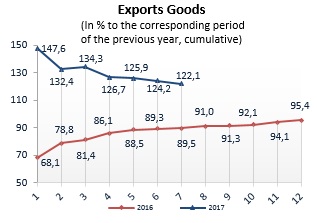 Ukraine’s foreign trade in goods, January-July 2017