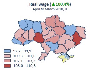 Indices for real wage by region, 2018