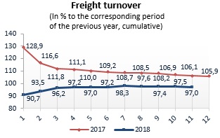 Price indices for construction and assembly operations in 2018 (to previous month)