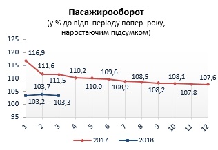 Пасажирооборот та кількість перевезених пасажирів у січні-березні 2018 року