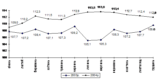 2004р. порівняно з 2003р. реальний валовий внутрішній продукт становив 112,0%.