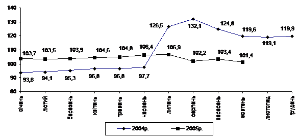 Індекс цін виробників промислової продукції за 10 місяців 2005р. становив 109,3% (за відповідний період попереднього року – 120,3%).