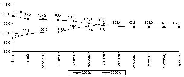 продукту у січні–липні 2006р. порівняно з відповідним періодом попереднього
