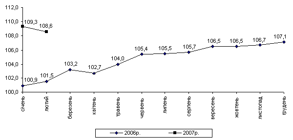 Індекс споживчих цін (індекс інфляції) у січні–лютому 2007р. становив 101,1% (у відповідному періоді попереднього року – 103,0%).