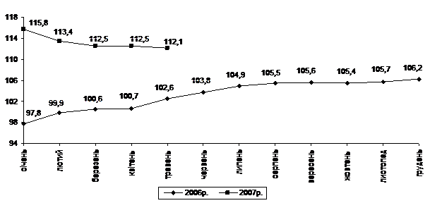 Індекс споживчих цін (індекс інфляції) у січні–травні 2007р. становив 101,9% (у відповідному періоді попереднього року – 102,8%).