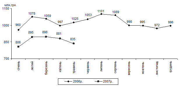 Оборот роздрібної торгівлі (до якого включено роздрібний товарооборот підприємств роздрібної торгівлі, розрахункові дані щодо обсягів продажу товарів на ринках і фізичними особами-підприємцями) за січень–травень 2007р. становив 106,3 млрд.грн., що на 26,4% більше обсягу січня–травня 2006р. У структурі обороту роздрібної торгівлі на організовані та неформальні ринки припадало 30,2%. В обороті організованих ринків 15% становив продаж сільськогосподарських продуктів.
