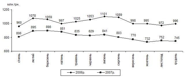 Динаміка суми заборгованості з виплати заробітної плати у 2006–2007 роках