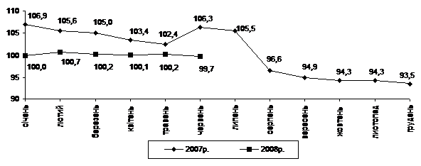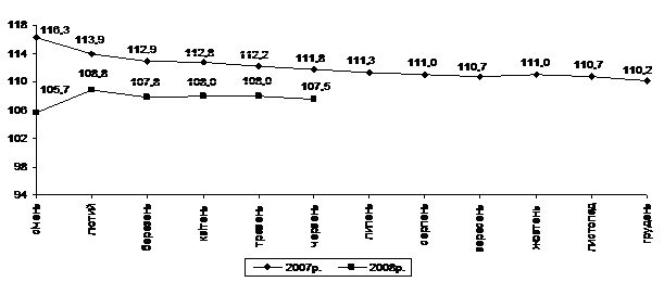 Індекс споживчих цін (індекс інфляції) у січні–червні 2008р. становив 115,5% (у січні–червні 2007р. – 104,2%).