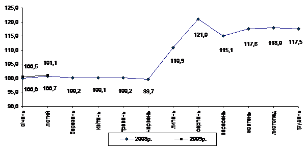 Індекс споживчих цін (індекс інфляції) у січні–лютому 2009р. становив 104,4% (у січні–лютому 2008р. – 105,7%).