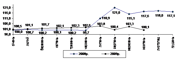 Індекс споживчих цін (індекс інфляції) у січні–жовтні 2009р. становив 110,1% (у січні–жовтні 2008р. – 118,0%).