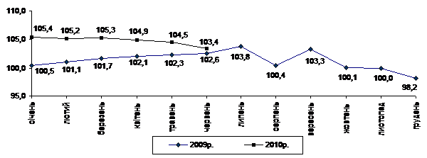 Індекс споживчих цін (індекс інфляції) у січні–червні 2010р. становив 103,3% (у січні–червні 2009р. – 108,6%).