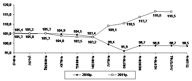 Індекс споживчих цін (індекс інфляції) у січні–листопаді 2011р. становив 104,4% (у січні–листопаді 2010р. – 108,2%).