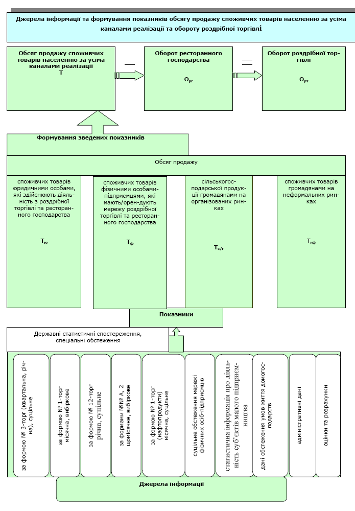 Систему статистичних досліджень та розрахунків зі статистики роздрібної торгівлі та ресторанного господарства щодо стану та тенденцій розвитку споживчого ринку схематично представлено у Додатку 1.