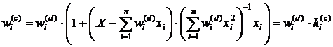 (коефіцієнтів перезважування) за формулою: