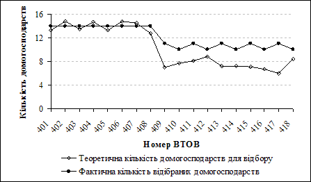 Дизайн вибірки обстеження умов життя домогосподарств в Україні розроблено у відповідності з сучасною міжнародною практикою проведення обстежень доходів і витрат домогосподарств [2, 3]. Формування вибірки здійснено на основі процедури стратифікованого багатоступеневого імовірнісного (випадкового) відбору. Процедура формування вибірки складається з таких основних етапів: