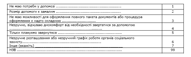 · причини, за якими населення, яке потребує допомоги, не звертається за нею до соціальних служб;