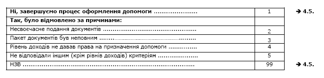F Якщо у запитанні 4.1. відмічено всі відповіді „НЗВ” è 4.5.