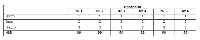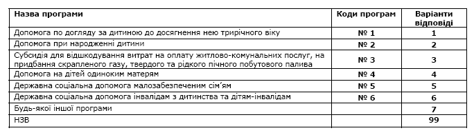 Лише одна відповідь по кожній з програм! (варіант відповіді 99 (НЗВ) не зачитувати!).