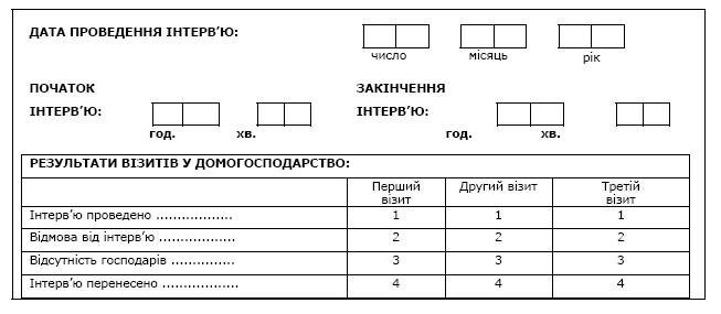 Під час першого візиту фахівець з інтерв'ювання має ознайомити членів домогосподарства з листом-зверненням, у якому вони запрошуються до участі в опитуванні (додаток 1).