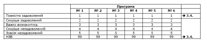 - Якщо по всіх програмах надано відповідь „1” – повністю задоволений, переходьте одразу до Запитання 3.4.