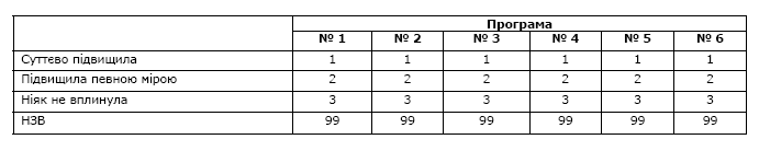 4.4. Передайте респондентові Картку № 2. Запропонуйте респондентові оцінити за стандартною п’ятибальною шкалою кожне твердження для кожної з програм послідовно.