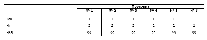 4.2. Задайте запитання по кожній з програм послідовно (варіант відповіді 99 (НЗВ) не зачитувати!).
