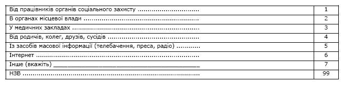 · ступінь інформованості населення щодо чинних в Україні програм соціальної допомоги та джерела отримання інформації;
