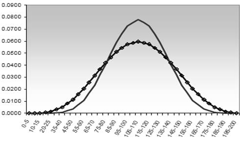 Функція розподілу повністю характеризує активи віку Т, але має певний недолік. За функцією розподілу важко зробити висновок про характер розподілу активів віку Т на невеликій ділянці тієї або іншої точки числової осі. Для усунення цього недоліку вводять поняття щільності розподілу, яка є похідною від функції розподілу.