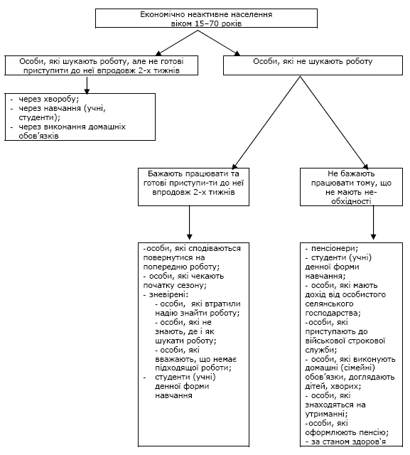 Економічно неактивне населення (населення поза робочою силою) – особи, які не мають роботи і не займаються її пошуками, тобто не можуть бути класифіковані як „зайняті” або „безробітні”.
