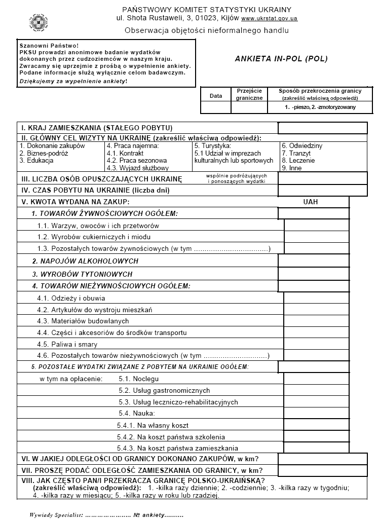 На основі отриманих результатів та з використанням досвіду Польщі, а саме Методологічного збірника Центрального статистичного управління Польщі, Управління статистики в м.Жешові “Обстеження обороту товарів і послуг в прикордонному русі” й було підготовлено проект Методологічних положень щодо оцінки обсягів неформальної торгівлі України.
