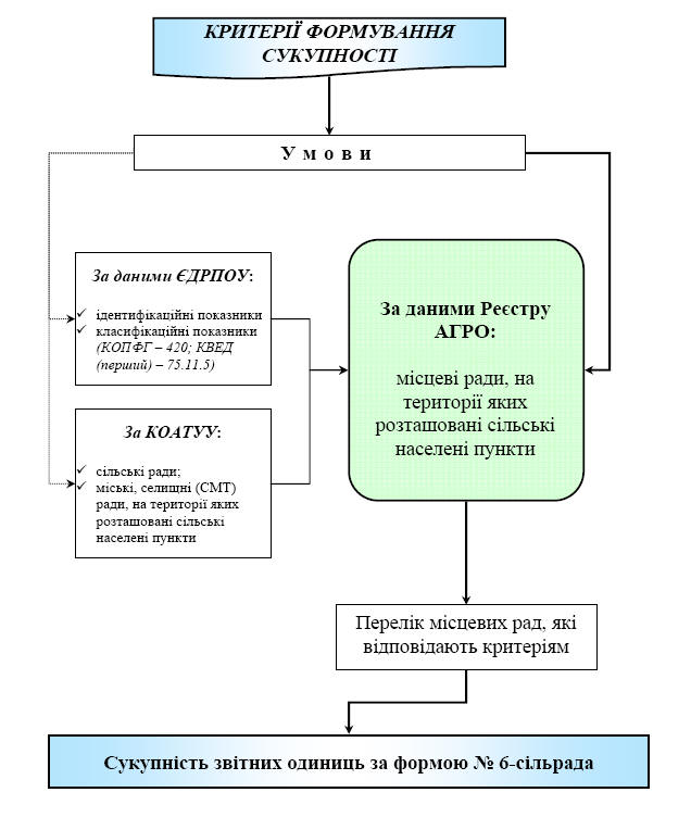 Схема формування сукупності звітних одиниць державного статистичного спостереження щодо окремих показників розвитку сільських, селищних, міських рад у галузі сільського господарства