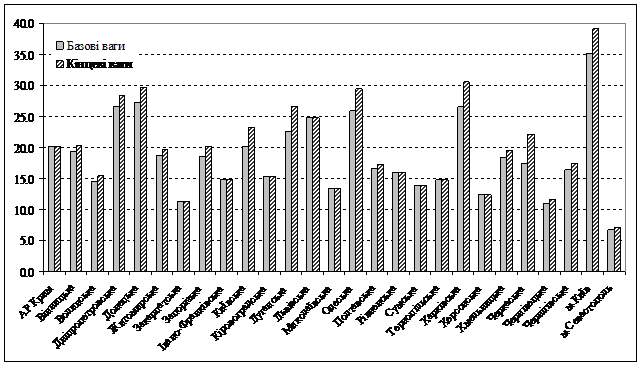 Коефіцієнти коригування базових ваг для