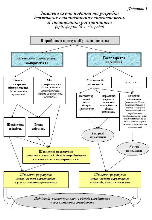 - порядок організації, методологію проведення державних статистичних спостережень із питань статистики рослинництва;