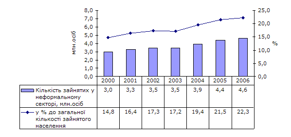 Визначення обсягів зайнятості у неформальному секторі економіки здійснюється починаючи з 1999 року відповідно до "Методики визначення обсягів зайнятості у неформальному секторі економіки України", затвердженої наказом Держкомстату України від 29.02.2000р. №73. Вказана методика розроблена на основі положень Резолюції щодо статистики зайнятості в неформальному секторі, що прийнята на 15-ій Міжнародній конференції статистиків праці (МКСП) у 1993 році. За національною методологією до неформального сектору включаються всі особи, які були зайняті на незареєстрованих підприємствах, що за своїм розміром (чисельністю працюючих) відносяться до сектору домашніх господарств. Віднесення підприємств до неформального сектору повинно одночасно відповідати наступним критеріям: - ринкова спрямованість; - обмежене число працівників; - відсутність державної реєстрації підприємницької діяльності. З урахуванням національних особливостей щодо поширення неформальних трудових відносин, критерії визначення кількості зайнятих у цьому секторі розширені за рахунок включення осіб, які працювали за усною домовленістю з роботодавцем в офіційному секторі, тобто без укладення офіційного трудового договору (контракту), що надає їм мінімальні соціальні гарантії відповідно до чинного законодавства. |