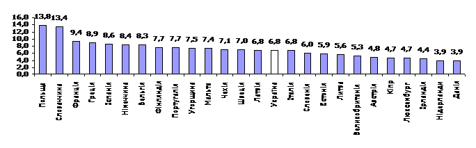 Оцінка надійності показника рівня безробіття населення у віці 15-70 років за регіонами у 2006 році