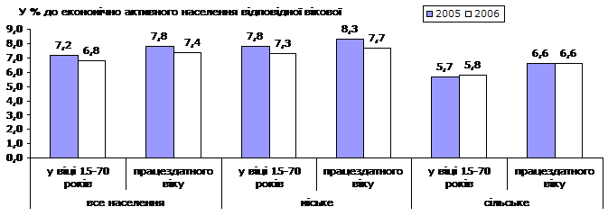 у % до економічно активного населення відповідної вікової групи |