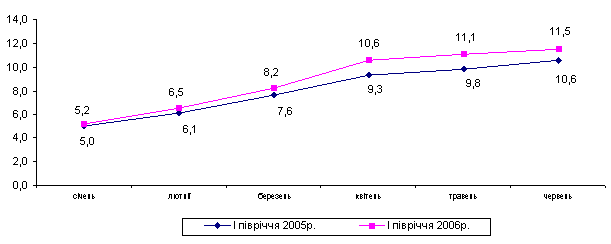 порівняно з І півріччям 2005