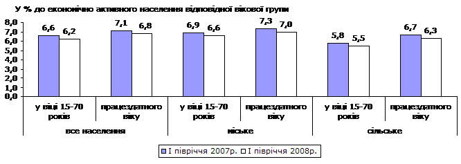 у віці 15-70 років за регіонами у І півріччі 2008 року