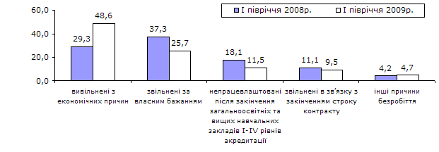 - зростання серед безробітних (за методологією МОП) частки вивільнених з економічних причин з 29,3% до 48,6%;