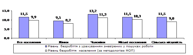 Рівень безробіття, визначений за методологією МОП |